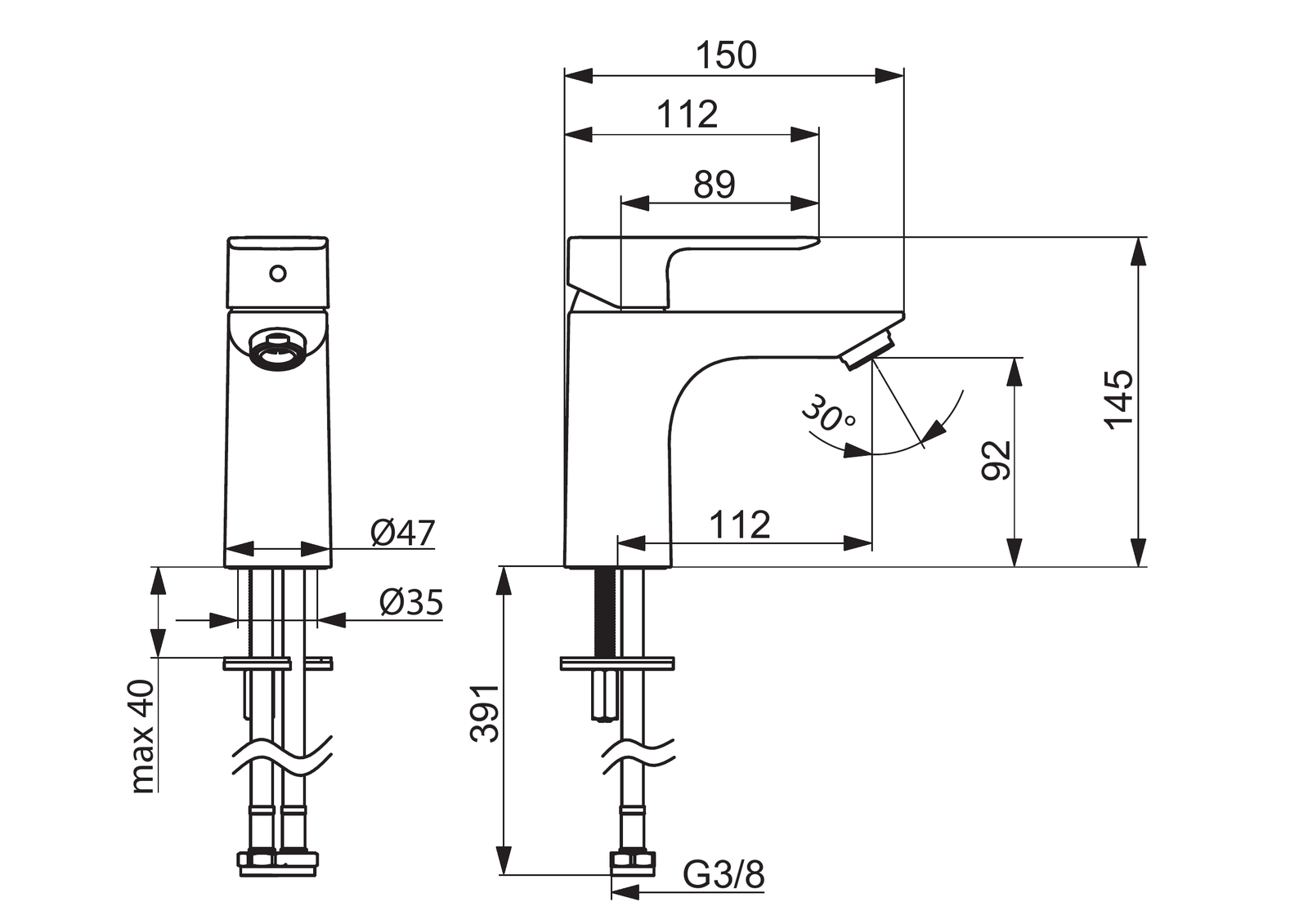 - Bez odpadní soupravy; Bez otvoru na táhlo