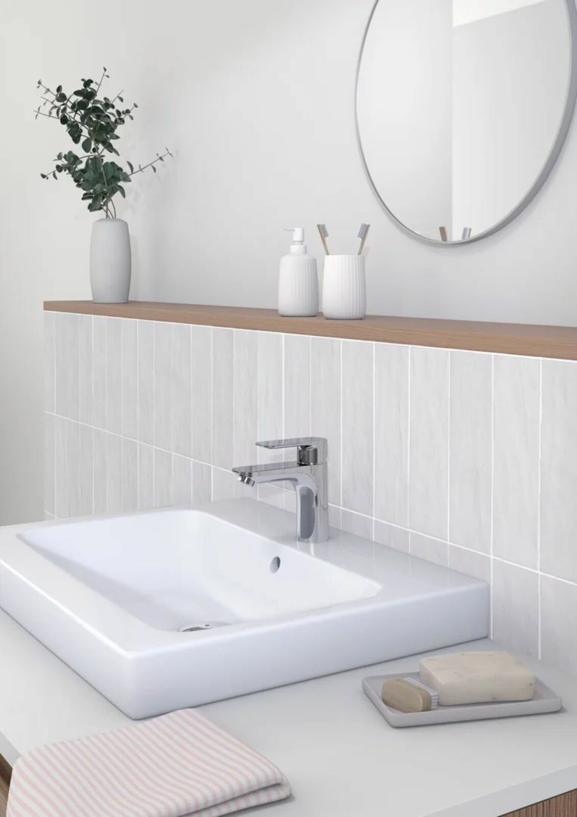 Nadčasová volba pro každou moderní koupelnu. Představujeme univerzální umyvadlovou baterii HANSABASIC. Díky chromovanému povrchu a jediné ovládací páce dodá tato nástěnná baterie moderní vzhled každému umyvadlu. Pevný výtok se symboly horké a studené vody je vyroben pro snadné použití, zatímco systém rychlé instalace zajišťuje rychlou a snadnou montáž. Přichází s klasickým designem a velmi dobrou cenou. Vyberte si řadu BASIC pro každodenní potěšení z jejího používání.
