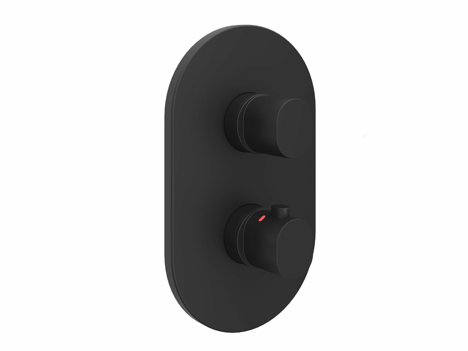 Termostatická podomítková 3cestná baterie Chrome II, určená pro R-box. V černém provedení. Nastavení stálé teploty vody.- kartuš (materiál): termostatická