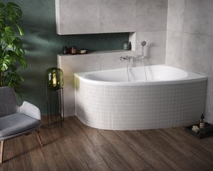 Vana JOANNA NEW 140 nabízí optimální komfort díky svému půlkruhovému tvaru, který vytváří prostorný interiér. Pro ještě větší pohodlí má vana tvarované opěradlo a snížené područky. Široká odkládací plocha také poskytuje vysokou funkčnost a poskytuje ideální místo pro produkty ke koupání, které by měly být vždy po ruce. Nastavitelné nožičky umožňují snadné nastavení výšky. Vana je určena pro levostrannou instalaci. Přední panel lze sestavit samostatně. Doporučujeme zvolit automatický sifon cersanit.