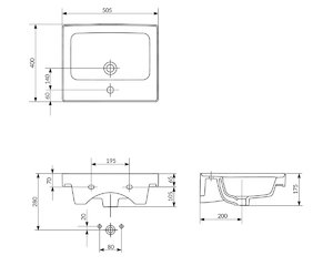 Nábytkové umyvadlo CREA 40 s přepadem a otvorem na armaturu.