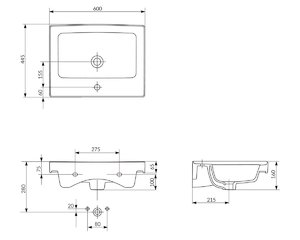 Nábytkové umyvadlo CREA 40 s přepadem a otvorem na armaturu.