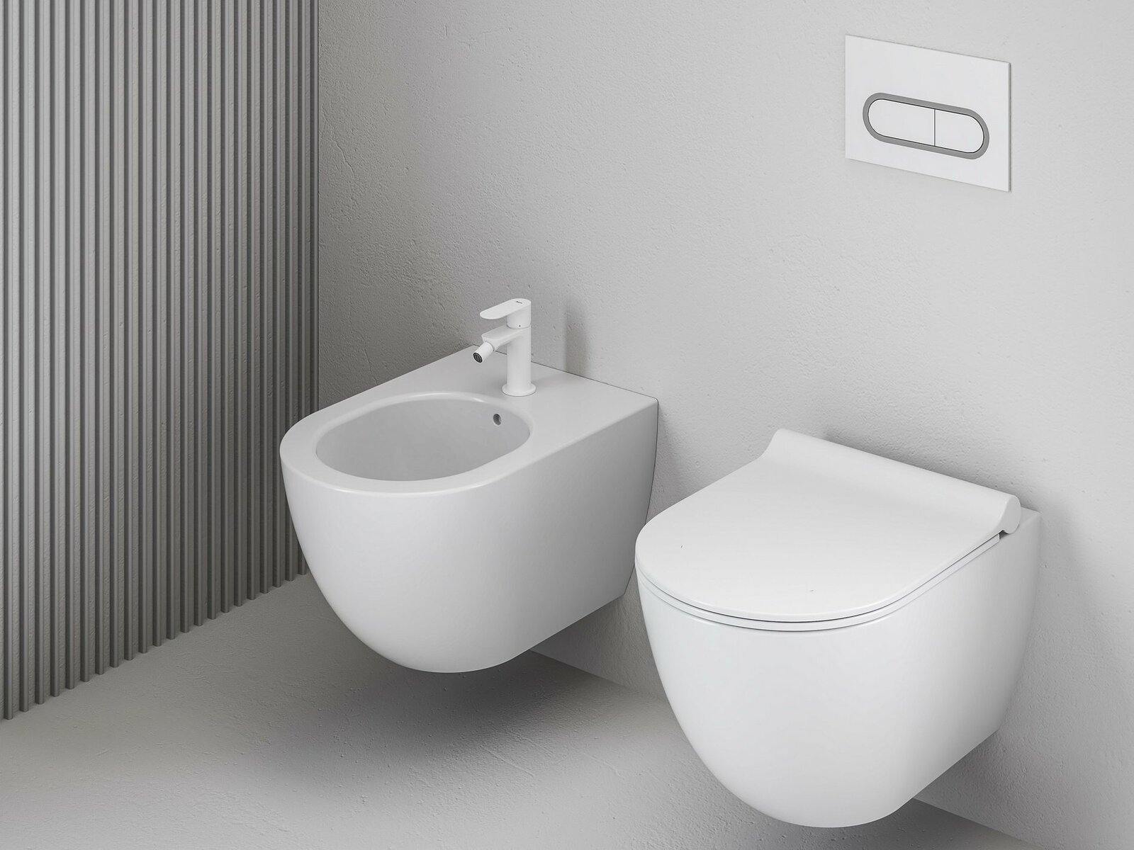 Stojánková bidetová baterie Eleganta, bez výpusti. V provedení White Velvet. Zapuštěný perlátor s funkcí EcoFlow.- výška baterie: 128 mm
