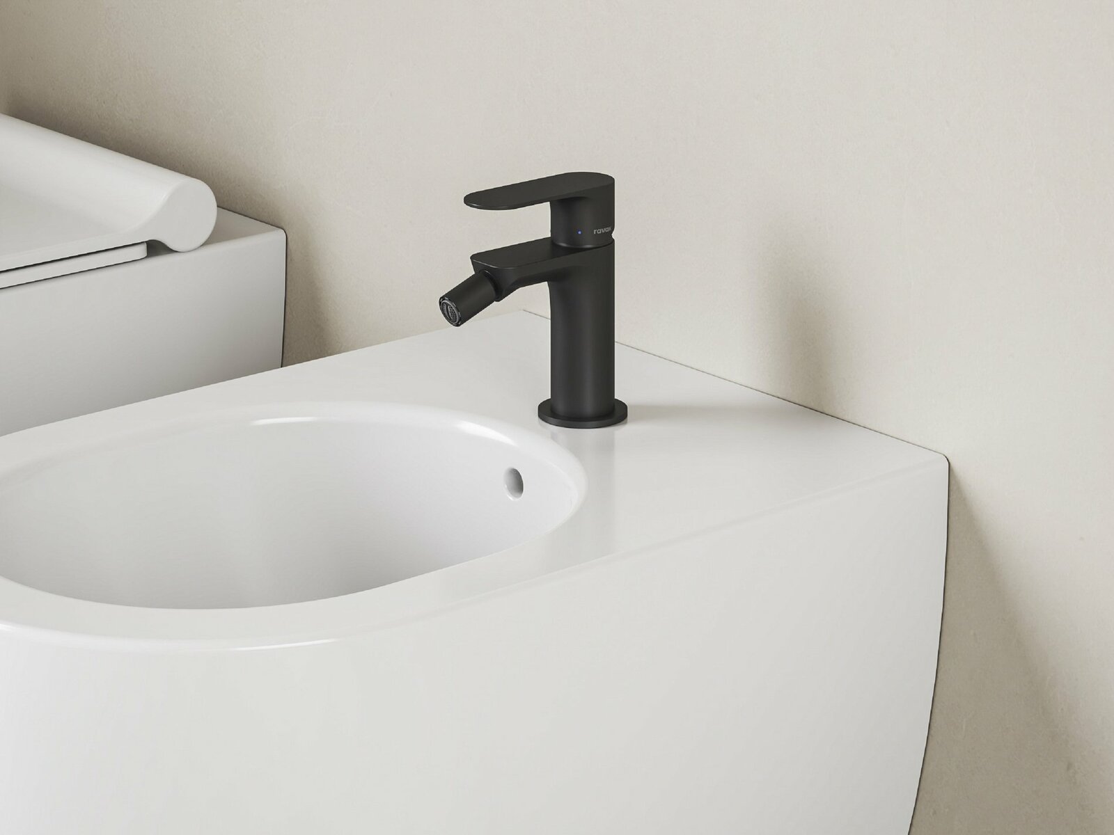 Stojánková bidetová baterie Eleganta, bez výpusti. V provedení Black Matt. Zapuštěný perlátor s funkcí EcoFlow.- výška baterie: 128 mm