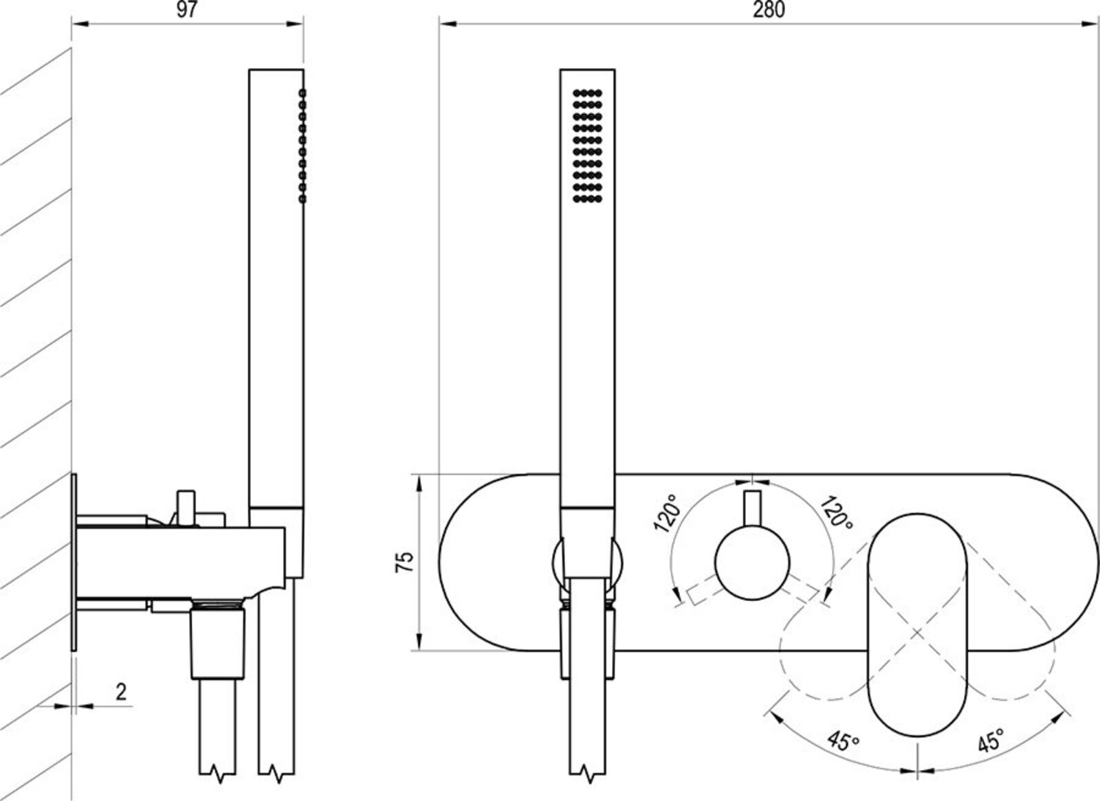 - k vanám s vanovou zástěnou pro napouštění přepadem nebo výtokovým ramínkem a vývodem pro ruční sprchu a pevnou hlavovou