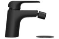 Bidetová stojánková baterie Flat, s odtokovou soupravou Click-Clack. V černém provedení.- výška baterie: 121 mm