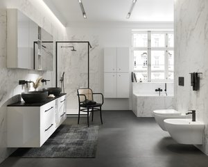 Závěsná toaletní mísa LARGA OVAL se vyznačuje inovativní technologií CleanOn. Tato technologie účinně čistí všechny vnitřní povrchy mísy, takže toaleta zůstane déle čistá a hygienická. To, čím závěsná WC mísa LARGA vyniká, je její moderní design. Sada obsahuje supertenké záchodové sedátko SLIM WRAP, jehož jednoduchý design zajišťuje snadné čištění, zatímco inovativní funkce easyoff jedním tlačítkem umožňuje rychlé a snadné vyjmutí sedátka pomocí jediného tlačítka. Funkce pomalého pádu zajišťuje postupné spouštění sedátka, které zabraňuje náhlému nárazu do mísy.