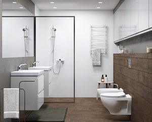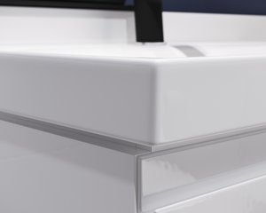 Skříň ve verzi SLIM, čelo skříně je vyrobeno z lakované MDF desky, samotná skříň má také lakovaný korpus. Model je vybaven pohodlnými frézovanými úchyty a mechanismem tichého zavírání zásuvek. Vnitřek zásuvek je proveden v šedé barvě. Umyvadlo je s přepadem a otvorem pro baterii. Výrobek je určen pro vlastní montáž.