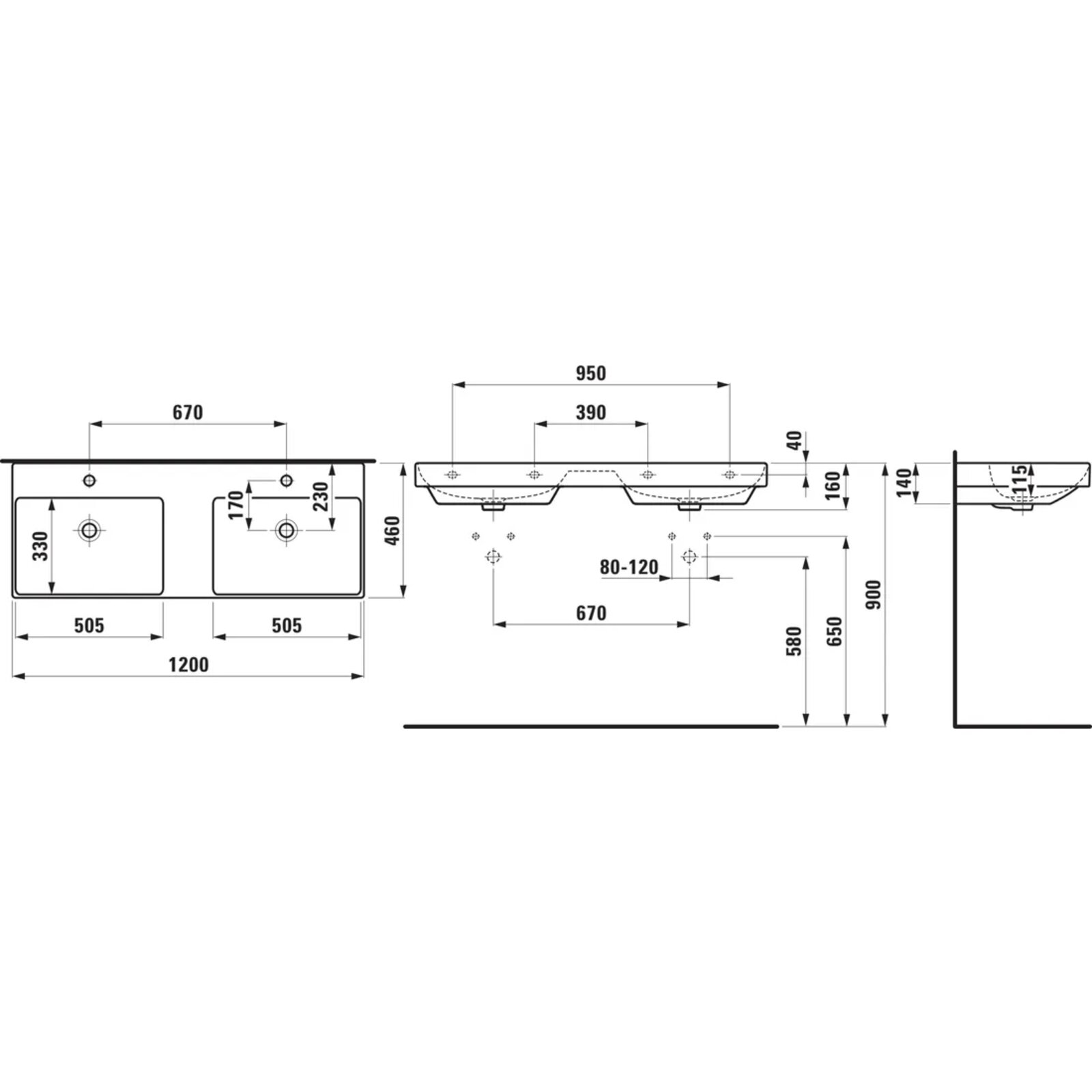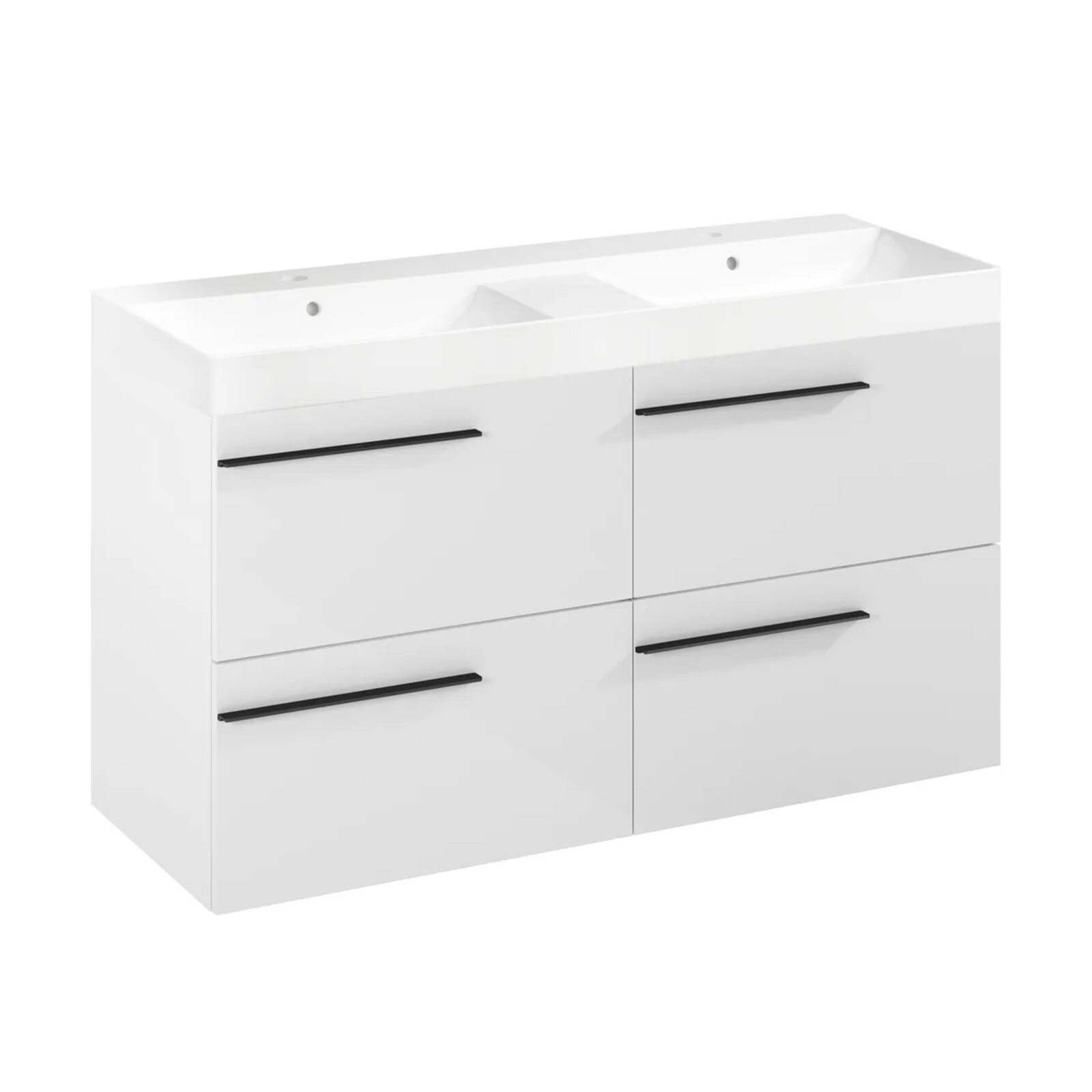 Nábytkový set Laufen Ardo 120, skříňka 120 pod umyvadlo bílá lesk, umyvadlo Ardo 120 nábytkové bílé, madlo černá mat