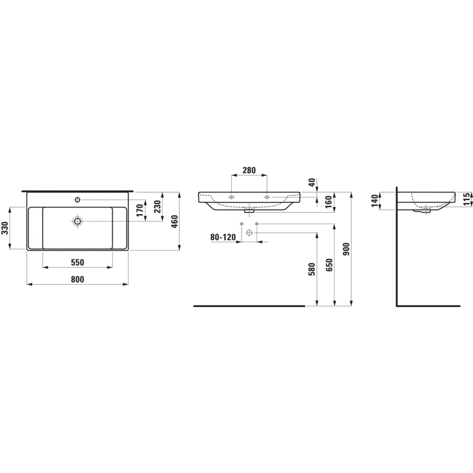 Nábytkový set Laufen Ardo 80, skříňka 80 pod umyvadlo bílá lesk, umyvadlo Ardo 80 nábytkové bílé, madlo černá mat