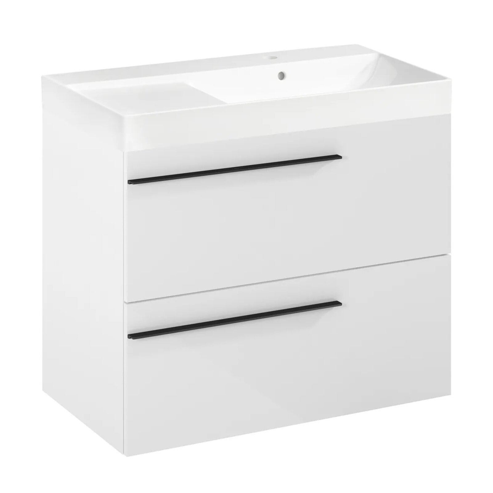 Nábytkový set Laufen Ardo 80, skříňka 80 pod umyvadlo bílá lesk, umyvadlo Ardo 80 nábytkové pravé bílé, madlo černá mat