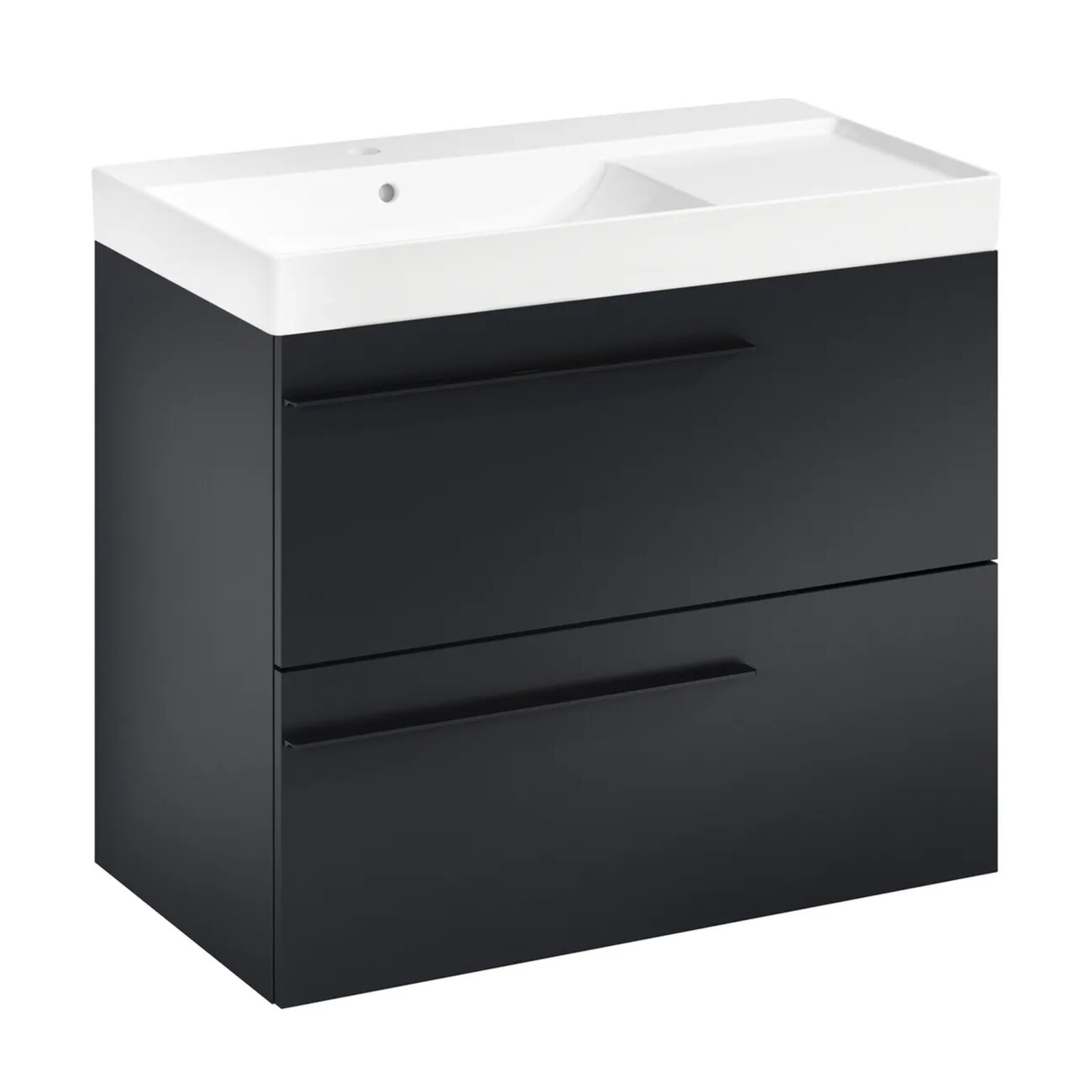 Nábytkový set Laufen Ardo 80, skříňka 80 pod umyvadlo černá mat, umyvadlo Ardo 80 nábytkové levé bílé, madlo černá mat