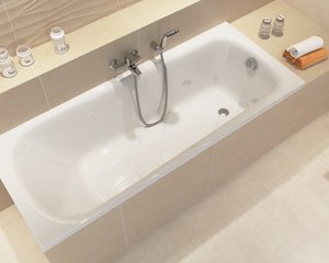 Prostorný interiér obdélníkové vany NAO 170 je vybaven profilovaným opěradlem. Model má navíc prostor pro baterii a boční výpusť umístěný na kratší straně. V ceně jsou nastavitelné nožky.