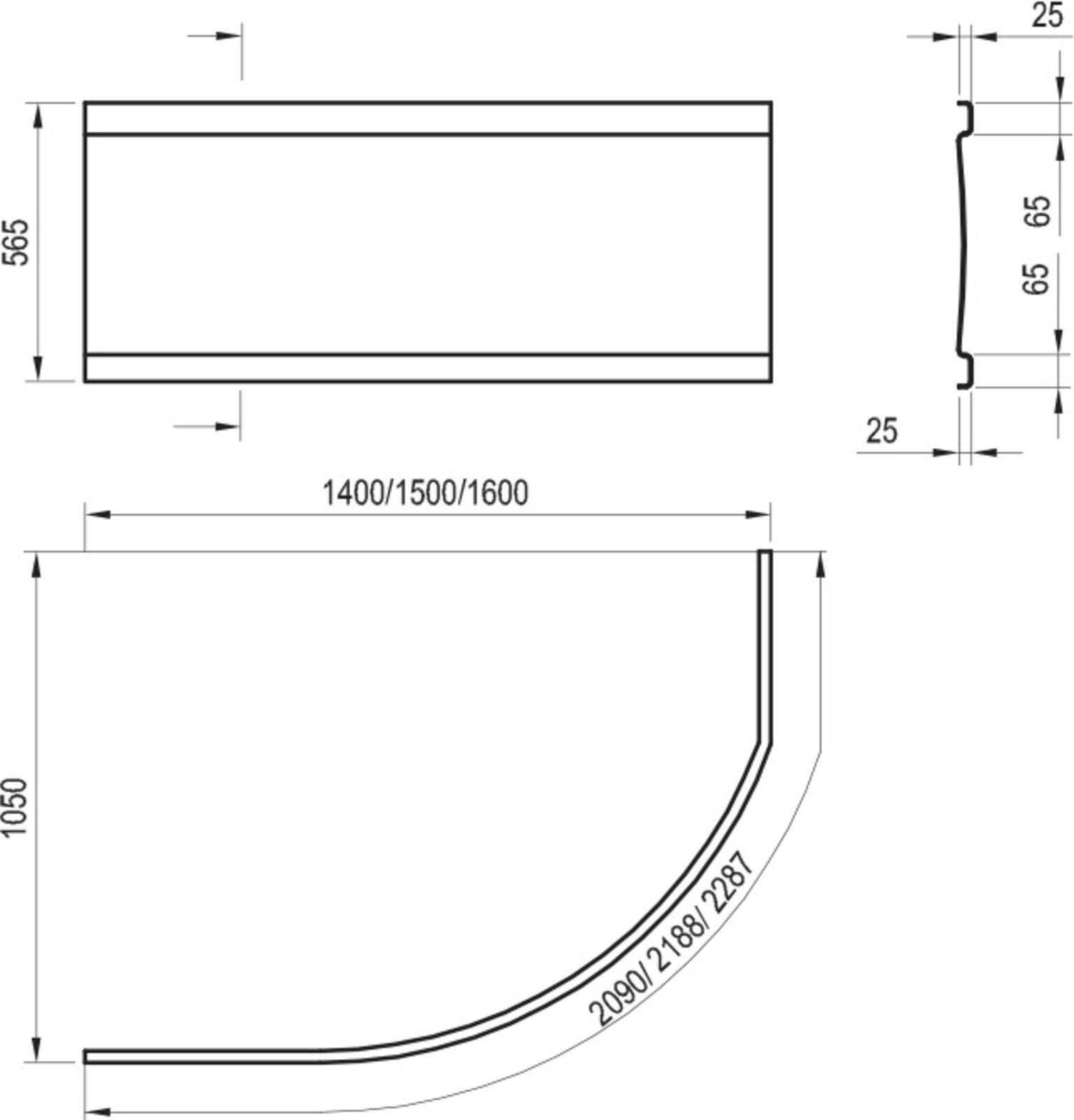 Akrylátový panel pro vanu Rosa I s délkou 140 cm. V bílém provedení.- v rozměru: 2090 x 565 mm