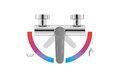 Vanová baterie Puri má speciální rotační kartuš s přepínáním vana/sprcha. Pohybem páky doprava (sprcha), či doleva (vana) se reguluje pouze teplota vody, nikoliv průtok vody, který je stabilní.