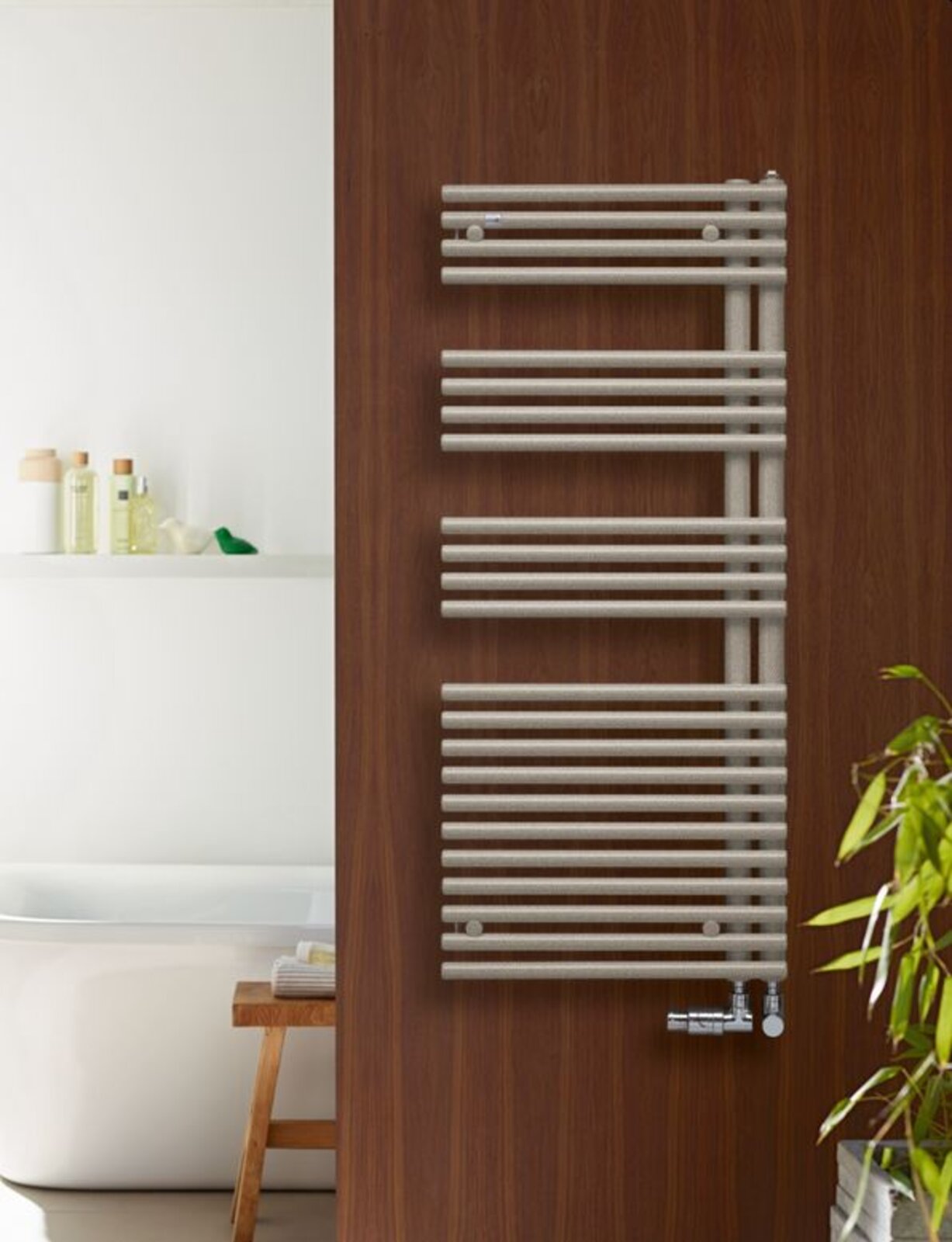 Příjemné teplo a uvolněná atmosféra v koupelně. Díky vpravo nebo vlevo umístěným vodorovným trubkám a jejich větší vzdálenosti od zdi lze ručníky pohodlně nasunout ze strany, a to v jakékoli výšce radiátoru.