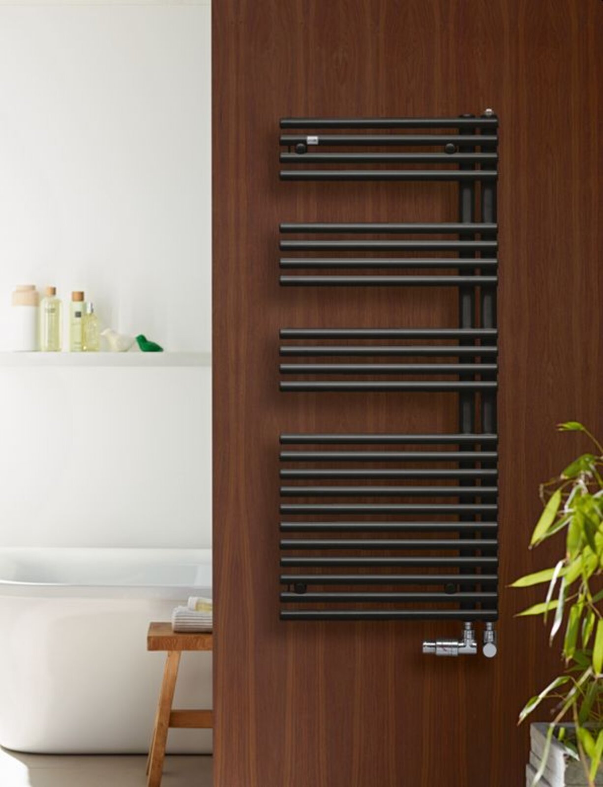 Příjemné teplo a uvolněná atmosféra v koupelně. Díky vpravo nebo vlevo umístěným vodorovným trubkám a jejich větší vzdálenosti od zdi lze ručníky pohodlně nasunout ze strany, a to v jakékoli výšce radiátoru.