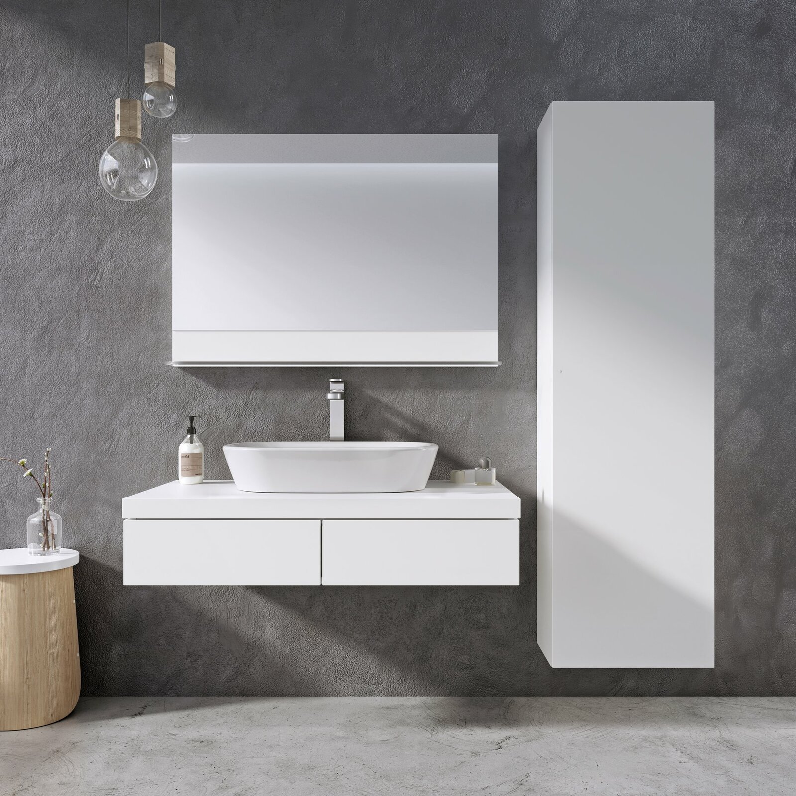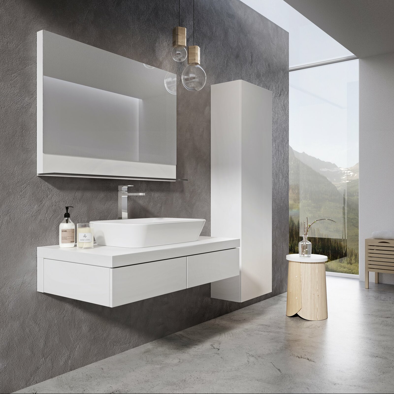 Vysoká skříňka SB Formy se skleněnými poličkami a odkládací plochou. Dodáváno ve smontovaném stavu. Pro ucelené řešení a designový soulad koupelny doporučujeme vysokou skříňku kombinovat s ostatními výrobky konceptu Formy I nebo Formy II a dalším koupelnovým nábytkem Ravak.