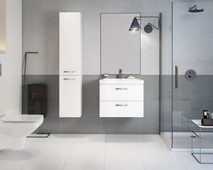 Součástí sestavy je závěsná skříňka pod umyvadlo LARA WHITE 60 s umyvadlem COMO 60. Čelo skříně a korpus jsou vyrobeny z 16mm dřevotřísky, lakované v bílé barvě. Skříňka je vybavena dvěma prostornými zásuvkami s funkcí soft-close a chromovanými úchyty. Tento kus vyžaduje vlastní montáž.