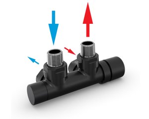 Set P armatura rohová, rozteč 50 mm, s regulační hlavicí vpravo RAL0557 Z-839059