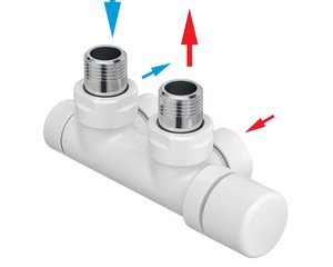 Set P armatura rohová, rozteč 50 mm, s regulační hlavicí vpravo, bílá Z-839051