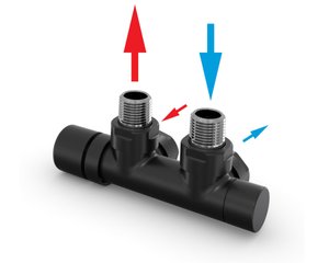 Set Q armatura rohová, rozteč 50 mm, s regulační hlavicí vlevo RAL0557 Z-839109