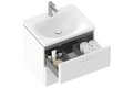 Vnitřní prostor skříňky je v barvě grafit. Dvě praktické zásuvky s pomalým dojezdem nabízí dostatek úložného prostoru. Skříňka má předvrtané otvory pro madla, která nejsou součástí skříňky a je nutné je dokoupit zvlášť ve 2 kusech. Na výběr jsou ve třech barevných provedeních - lesklý chrom, černá nebo bílá. Je určena pod zápustné umyvadlo Balance 50 bez přepadu, doplněné umyvadlovým sifonem s pevnou výpustí. Skříňku lze doplnit také bílou deskou Balance 120, konzolí desky Balance/Comfort 120, bílým věšákem ručníků Balance II a umyvadlem na desku (např. řady Uni / Uni Slim). Dodáváno ve smontovaném stavu včetně montážní sady (šrouby, panty, záslepky). Skříňka je montována na zeď.