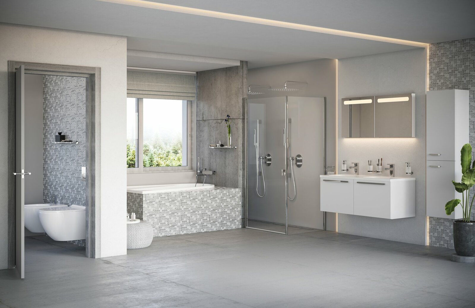 Sprchový kout je složen ze dvou samostatných sprchových dveří.