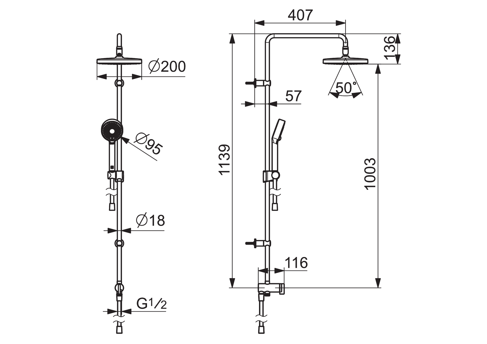 - Ruční sprcha; Sprchová tyč; Hlavová sprcha; Sprchová tyč s nastavitelnou roztečí úchytů; Sprchová hadice (1750 mm); Variabilní montážní body; Otočné připojení kulového kloubu; Technologie proti usazeninám (snadno se čistí)