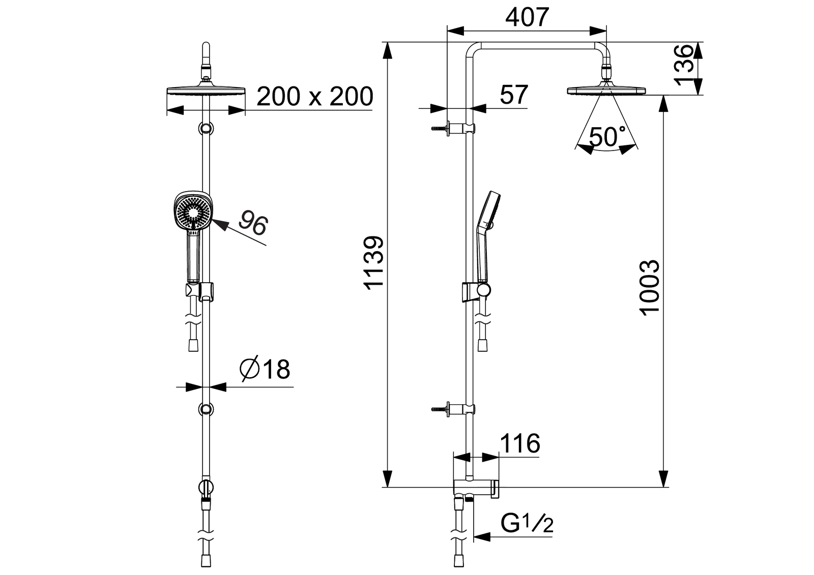 - Ruční sprcha; Sprchová tyč; Hlavová sprcha; Sprchová tyč s nastavitelnou roztečí úchytů; Sprchová hadice (1750 mm); Eco funkce pro omezení průtoku vody; Variabilní montážní body; Otočné připojení kulového kloubu; Technologie proti usazeninám (snadno se čistí)