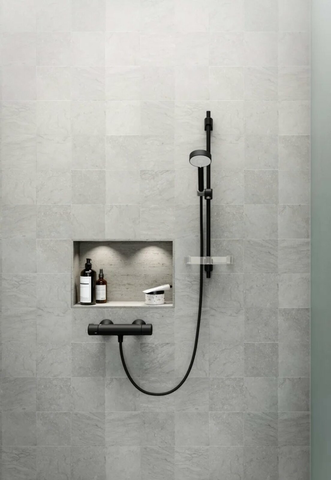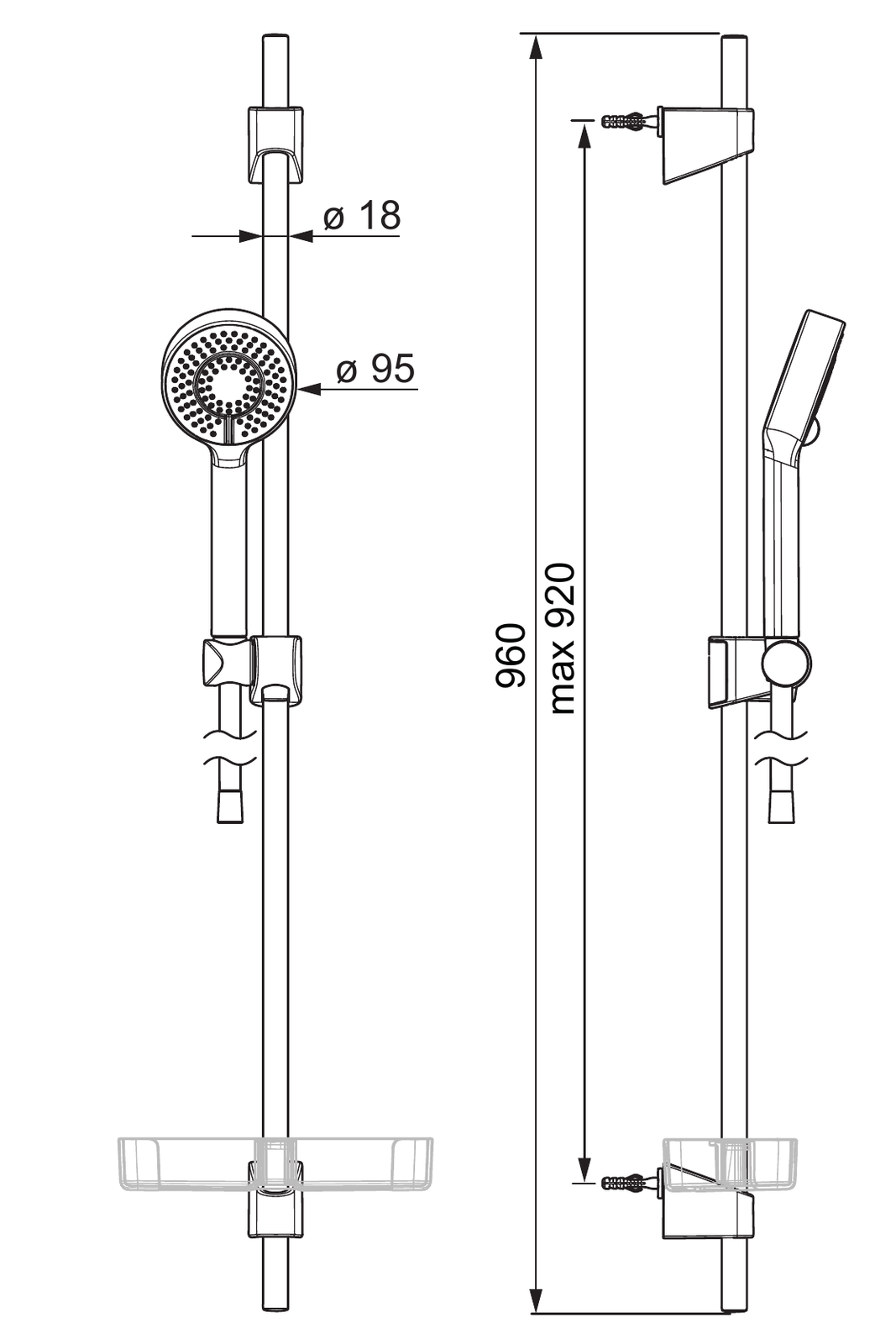 - Ruční sprcha; Sprchová tyč; Sprchová tyč s nastavitelnou roztečí úchytů; Mýdelník; Sprchová hadice (1750 mm); Technologie proti usazeninám (snadno se čistí)