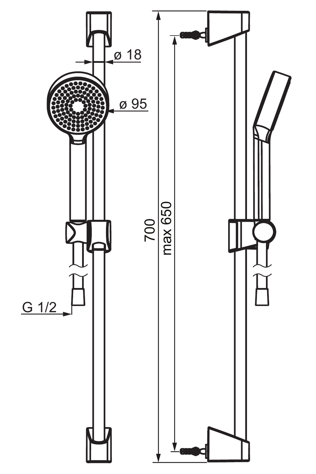 - Ruční sprcha; Sprchová tyč; Sprchová tyč s nastavitelnou roztečí úchytů; Sprchová hadice (1750 mm); Technologie proti usazeninám (snadno se čistí)