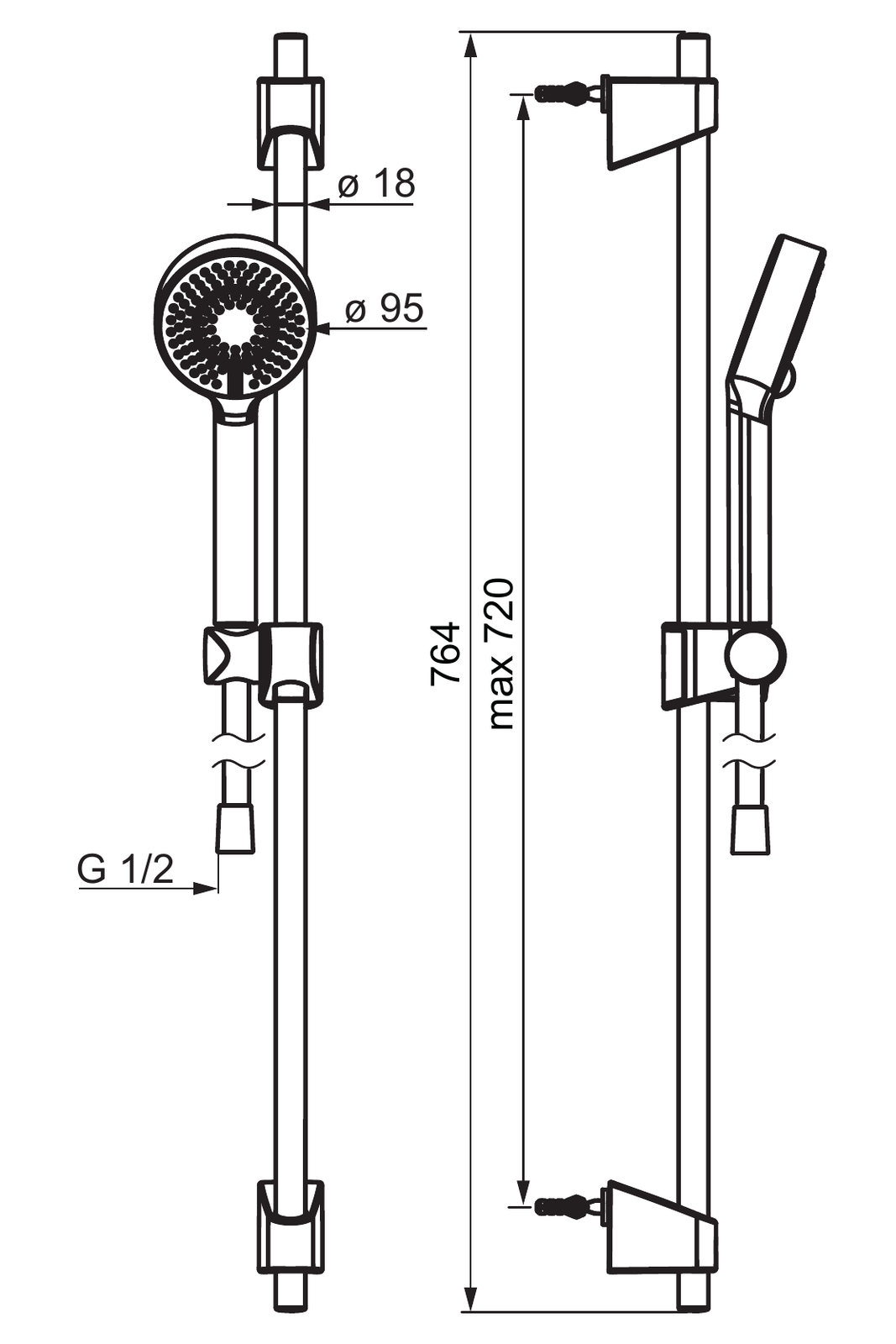 - Ruční sprcha; Sprchová tyč; Sprchová tyč s nastavitelnou roztečí úchytů; Sprchová hadice (1750 mm); Eco funkce pro omezení průtoku vody; Technologie proti usazeninám (snadno se čistí)