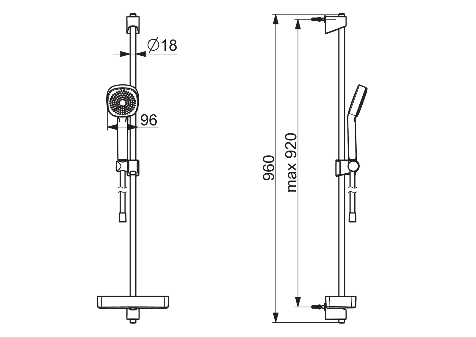 - Ruční sprcha; Sprchová tyč; Sprchová tyč s nastavitelnou roztečí úchytů; Mýdelník; Sprchová hadice (1750 mm); Technologie proti usazeninám (snadno se čistí)