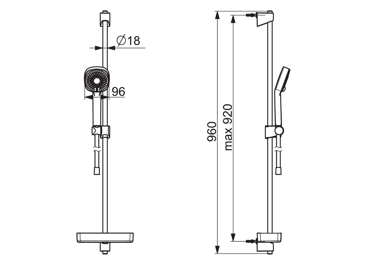 - Ruční sprcha; Sprchová tyč; Sprchová tyč s nastavitelnou roztečí úchytů; Mýdelník; Sprchová hadice (1750 mm); Technologie proti usazeninám (snadno se čistí)