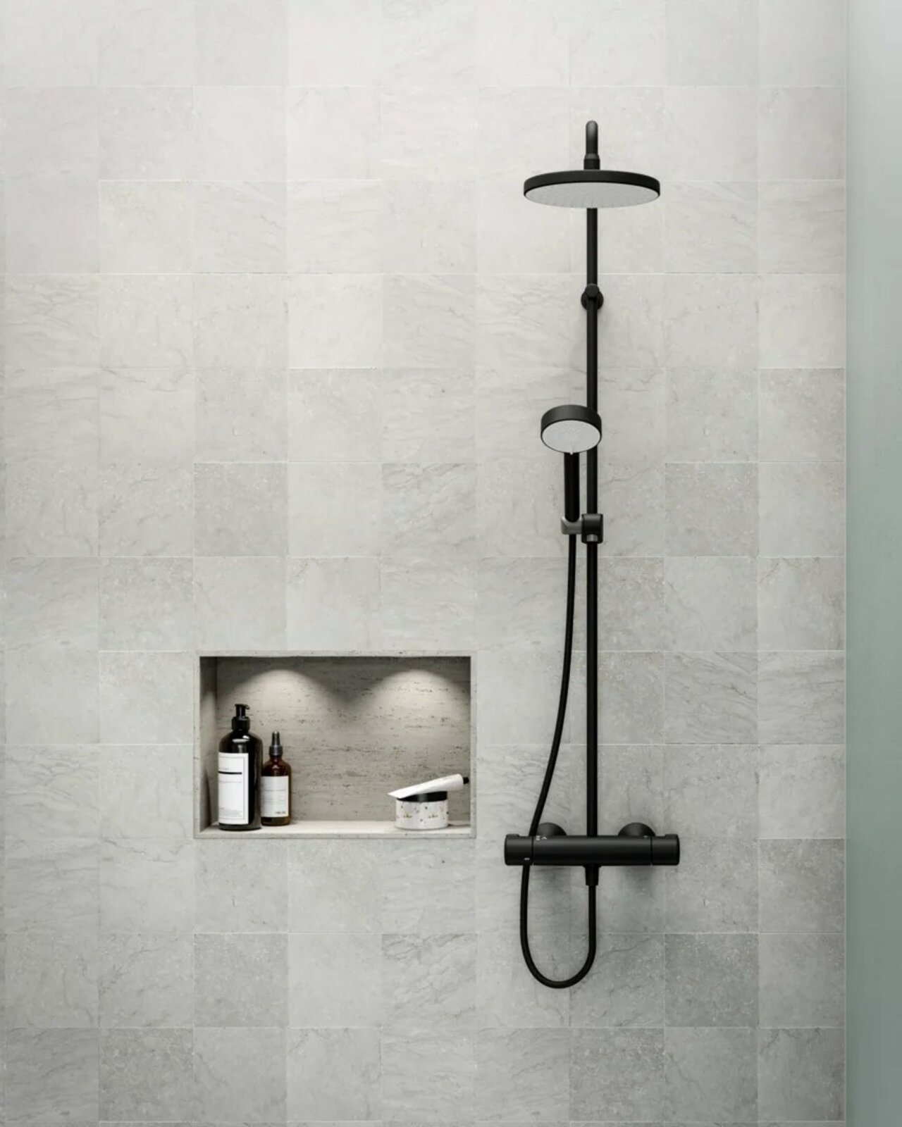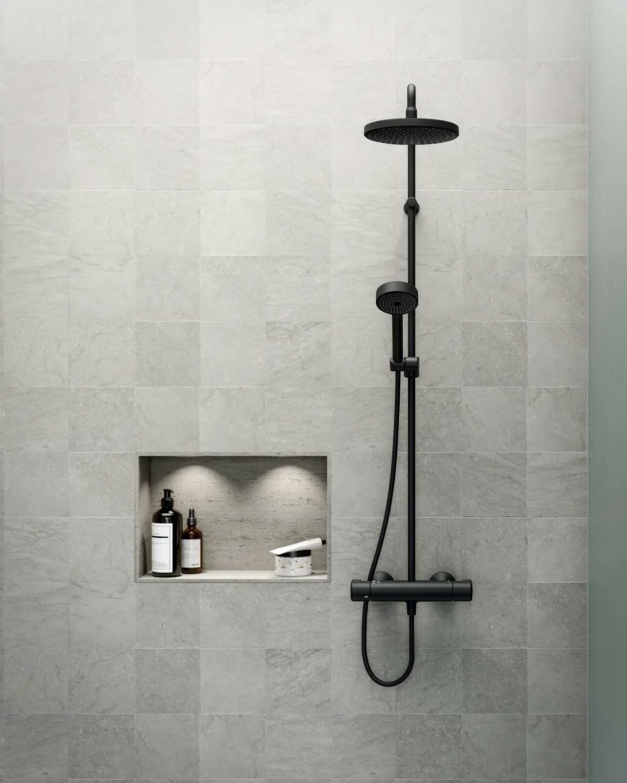 - Ruční sprcha; Sprchová tyč; Hlavová sprcha; Sprchová tyč s nastavitelnou roztečí úchytů; Sprchová hadice (1750 mm); Variabilní montážní body; Otočné připojení kulového kloubu; Technologie proti usazeninám (snadno se čistí)