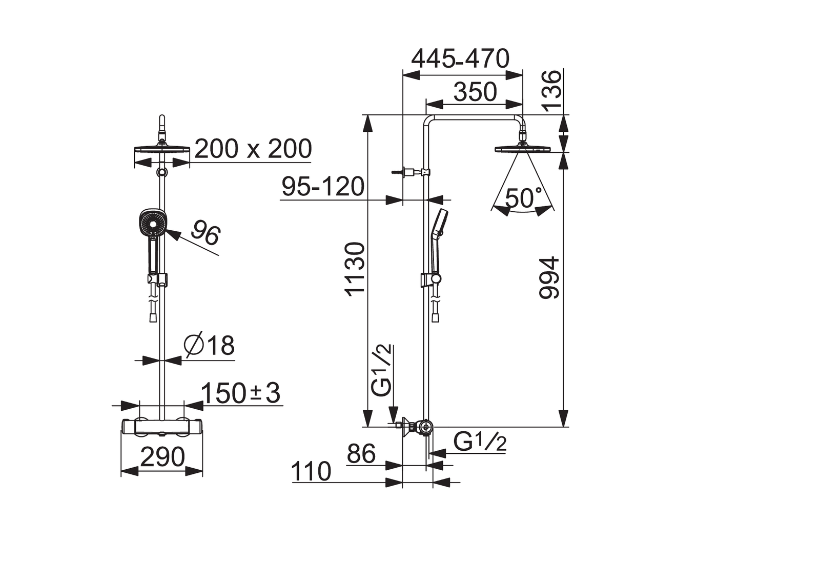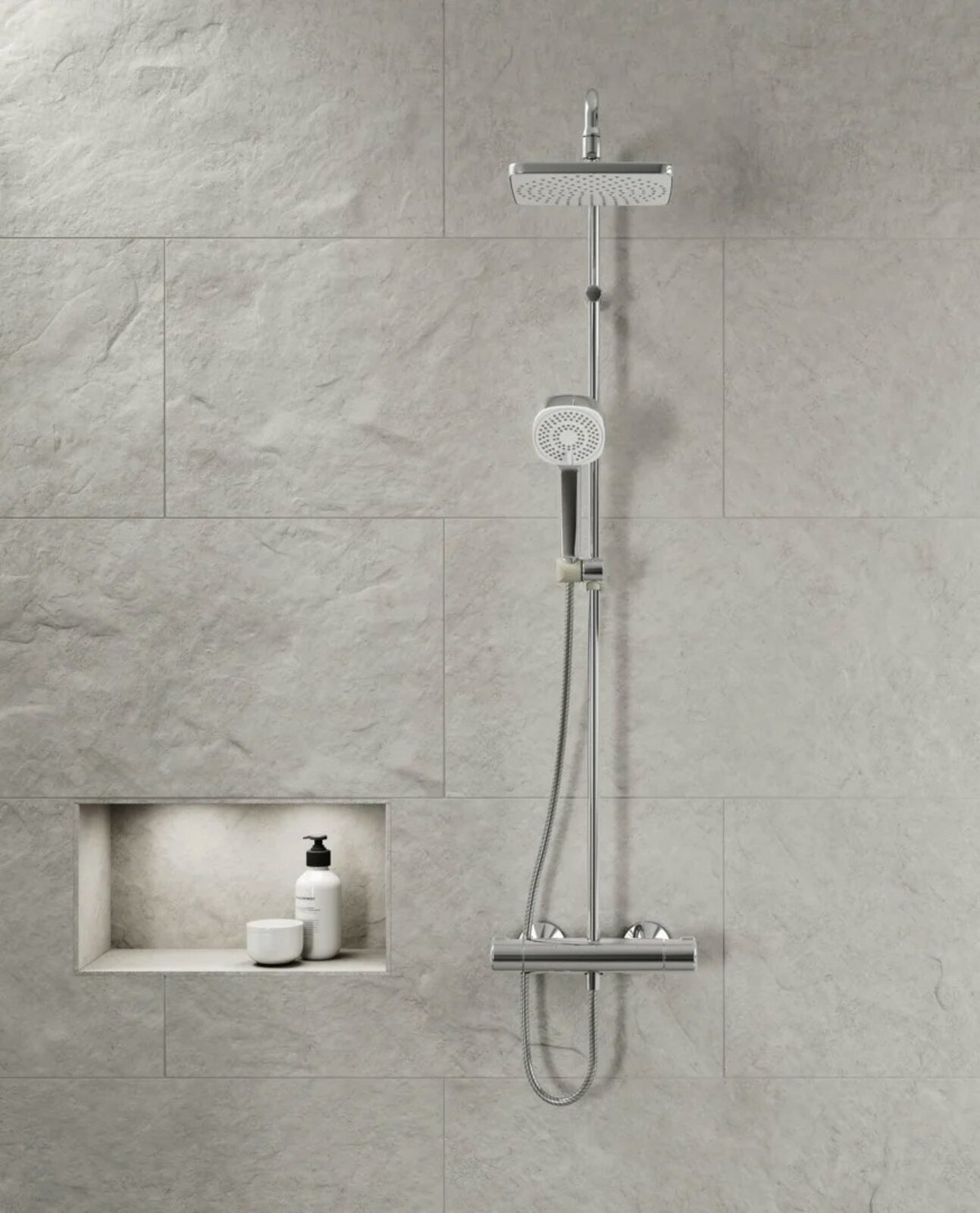 - Ruční sprcha; Sprchová tyč; Hlavová sprcha; Sprchová tyč s nastavitelnou roztečí úchytů; Sprchová hadice (1750 mm); Eco funkce pro omezení průtoku vody; Variabilní montážní body; Otočné připojení kulového kloubu; Technologie proti usazeninám (snadno se čistí)