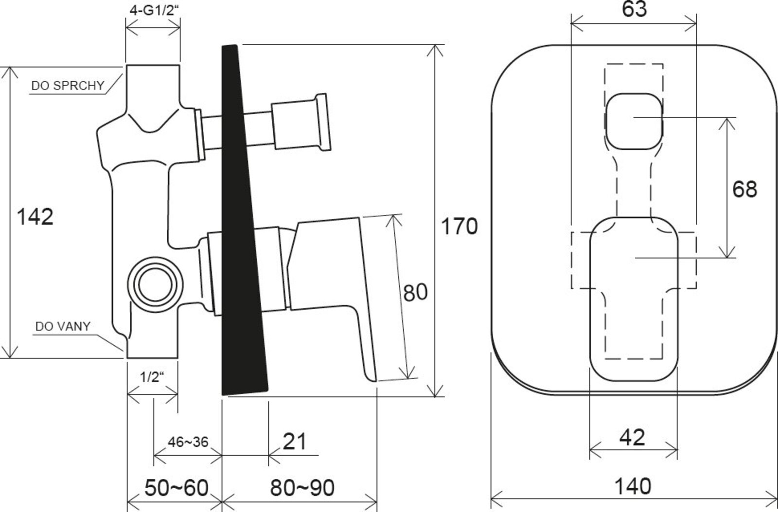- vhodná: k vaně 10° nebo k vanám (s napouštěním přepadem a vývodem pro ruční sprchu) nebo pro sprchové kouty, které mají pevnou hlavovou a ruční sprchu