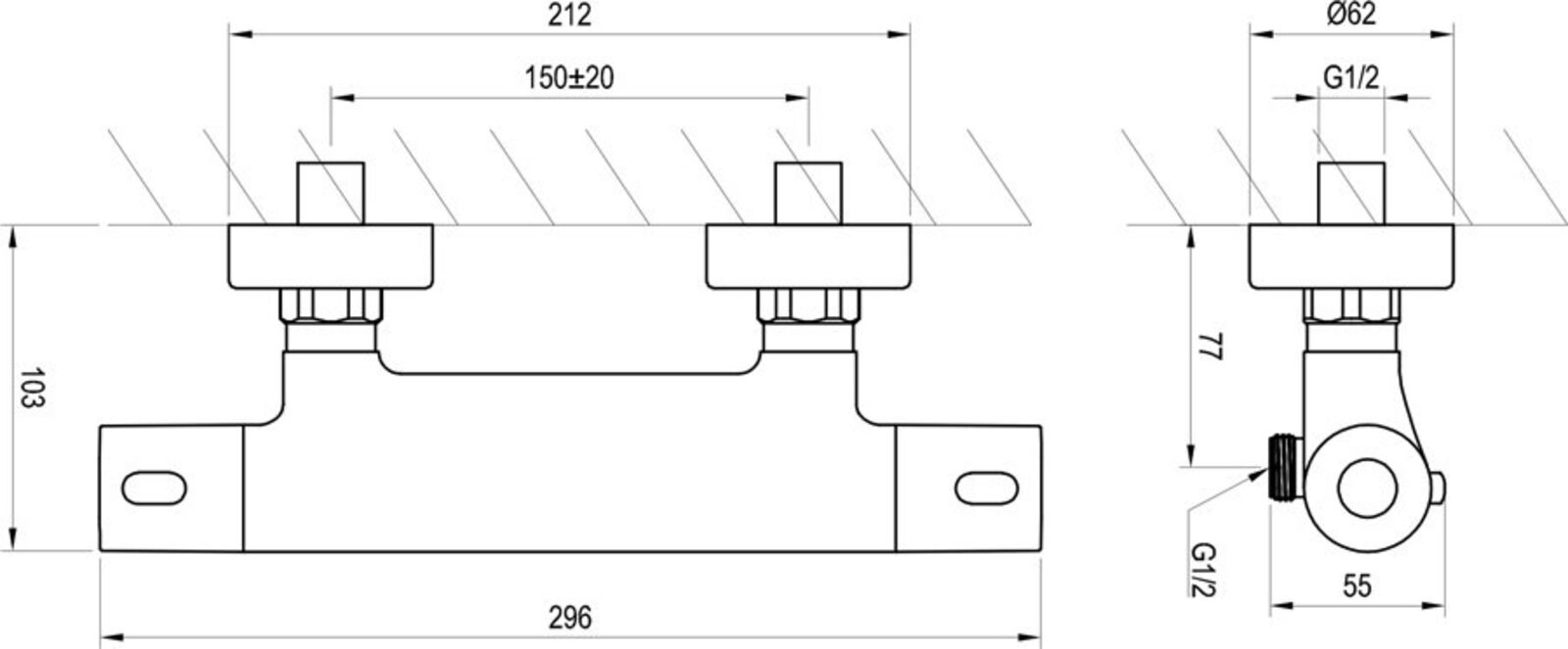 Termostatická nástěnná sprchová baterie Termo, bez sprchového setu. V chromovém provedení. Nastavení stálé teploty vody.- rozteč baterie: 150 mm