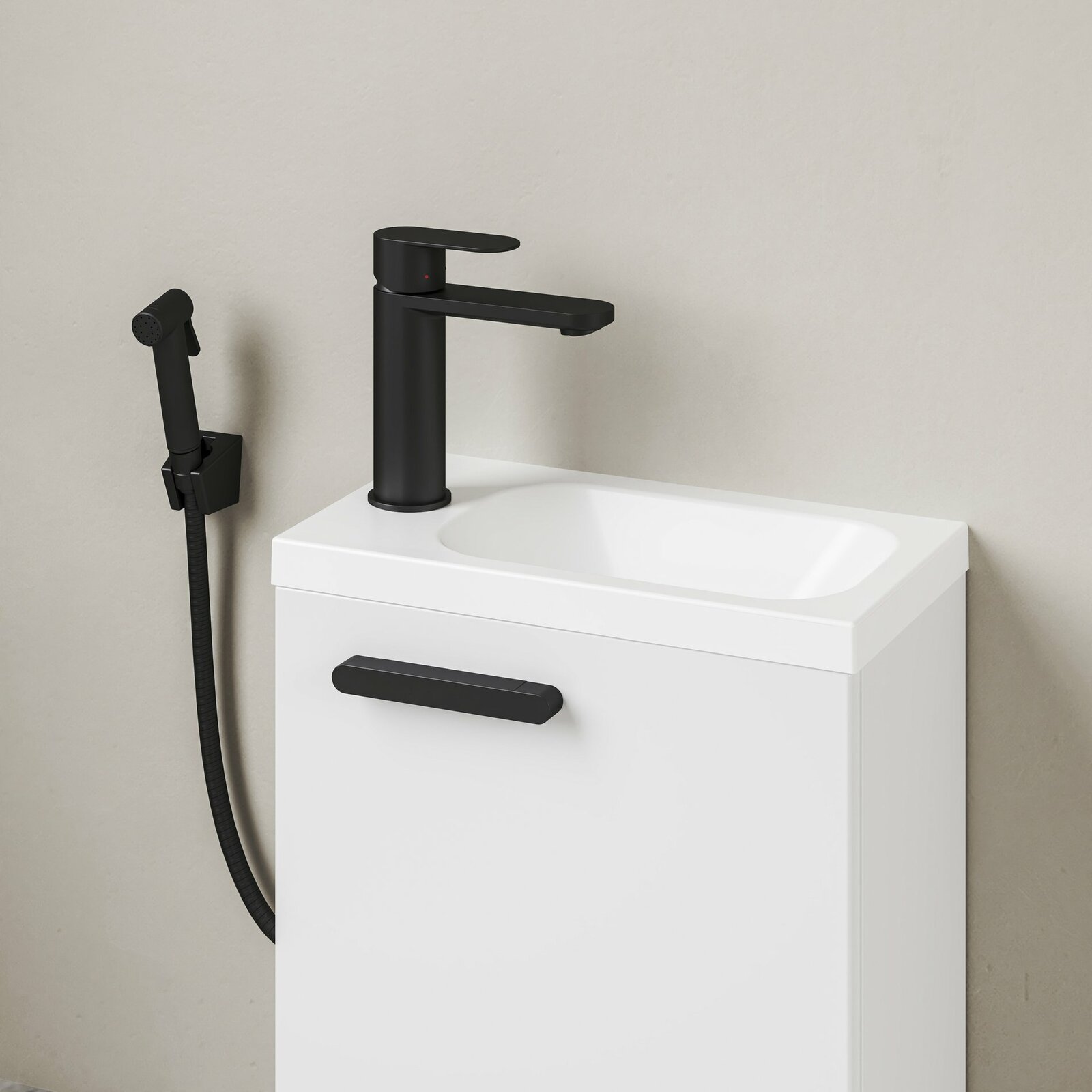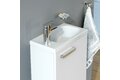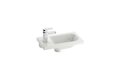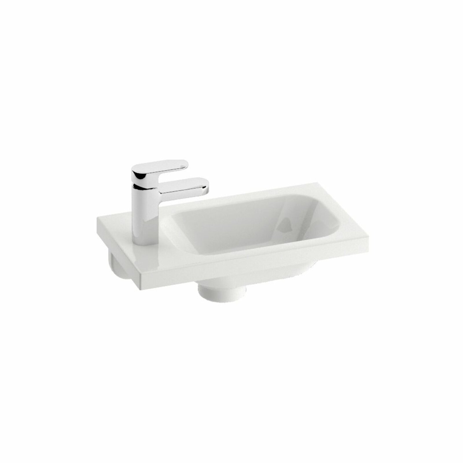 Nábytkové umývátko Chrome z litého mramoru k instalaci na zeď nebo k zapuštění do závěsné skříňky, bez přepadu. Bílé provedení. Levá varianta.- rozměry (šxh): 40 x 22 cm
