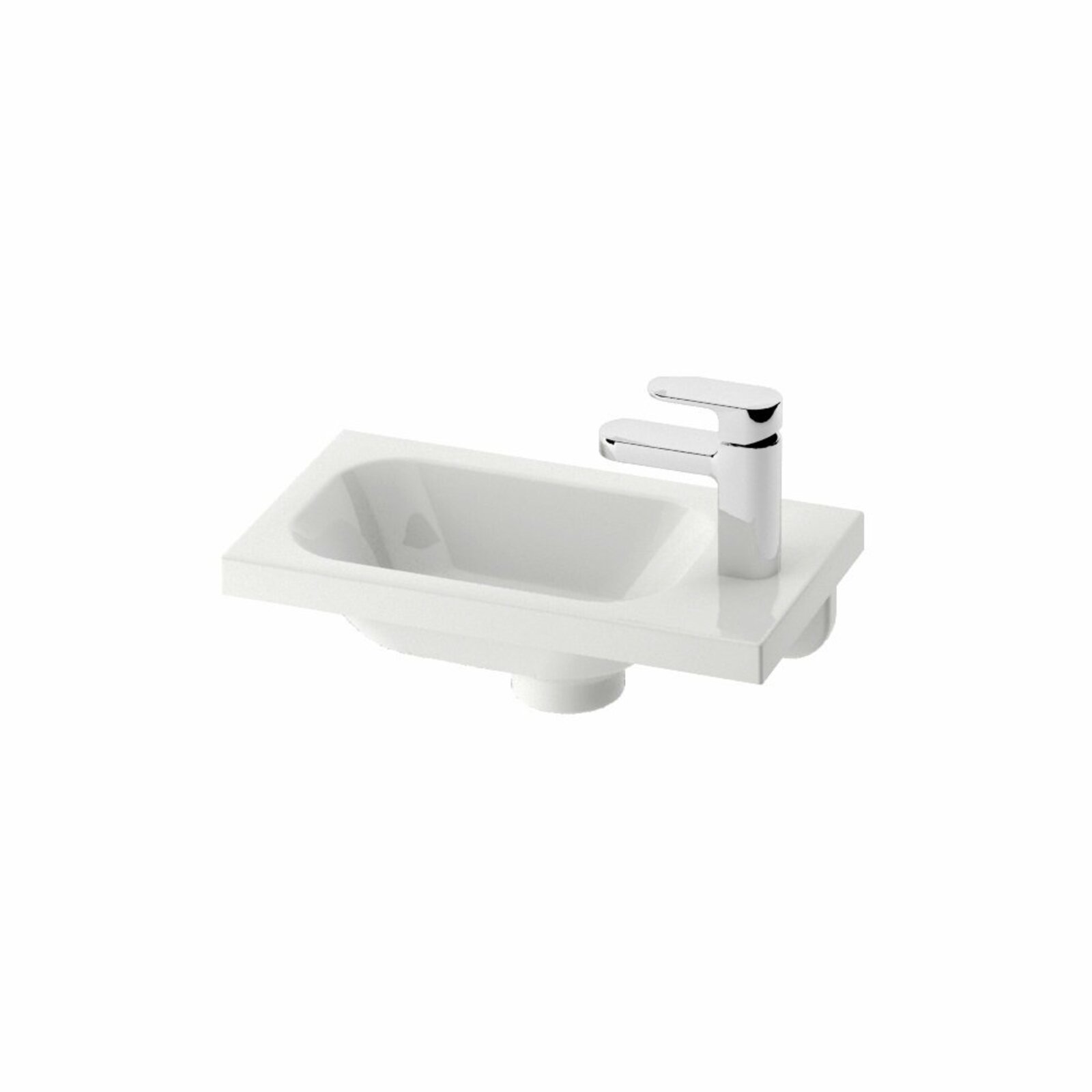 Nábytkové umývátko Chrome z litého mramoru k instalaci na zeď nebo k zapuštění do závěsné skříňky, bez přepadu. Bílé provedení. Pravá varianta.- rozměry (šxh): 40 x 22 cm