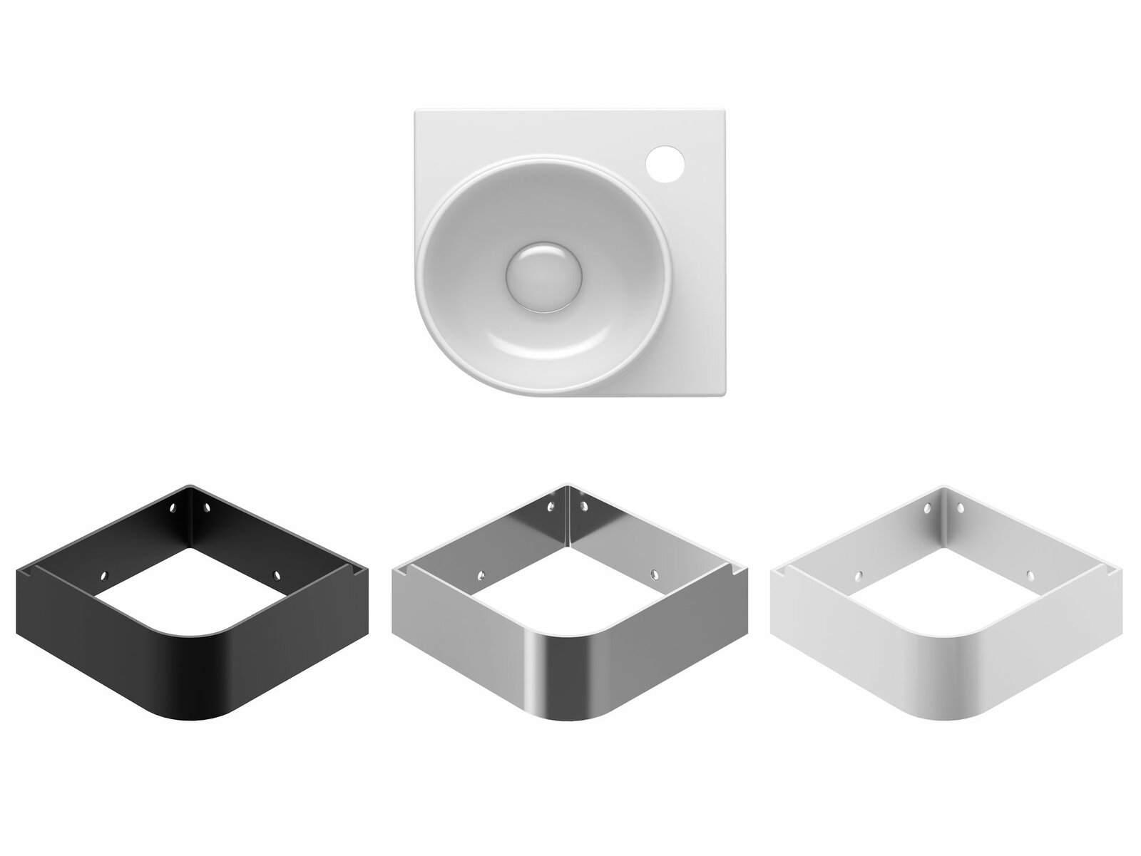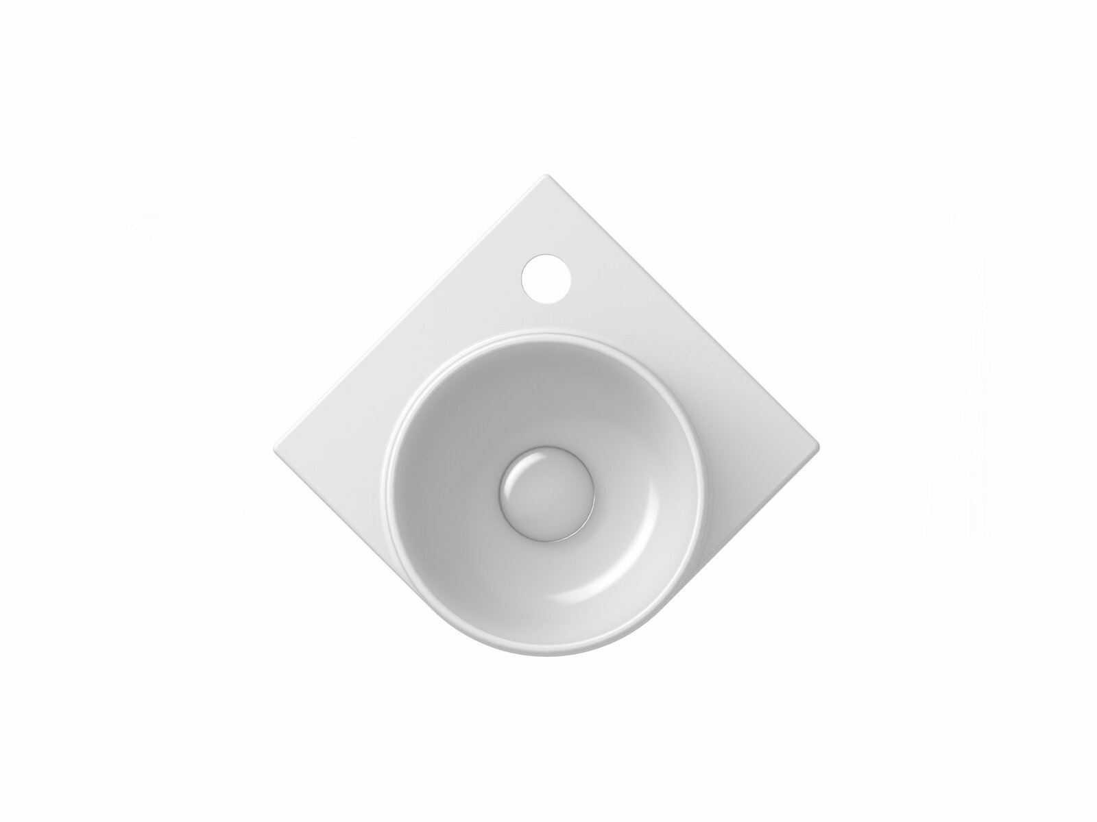 Tenkostěnné keramické rohové umývátko Yard k instalaci na konzoli Yard, bez přepadu. Bílé provedení. S otvorem pro stojánkovou baterii.- rozměry (šxhxv): 28 x 28 x 12,5 cm