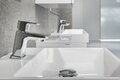 Piletu umístěnou v umyvadle s přepadem zkombinujete s baterií, sifonem a koupelnovými doplňky shodného barevného provedení lesklý chrom.