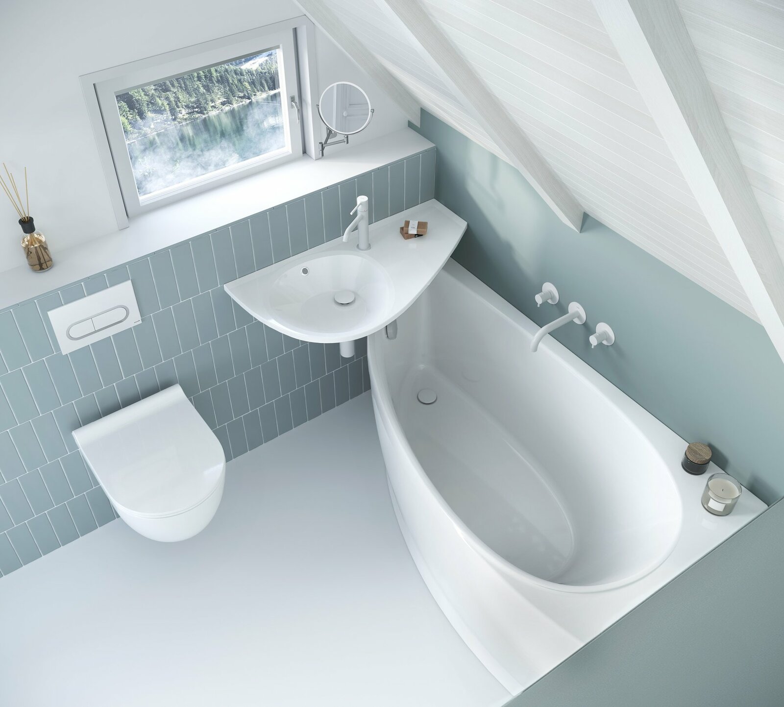 Vana Avocado spolu s umyvadlem Avocado představuje úsporné řešení do nejmenších koupelen a tvoří sladěné vybavení koupelny tzv. koncept Avocado.