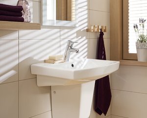 Elegantní umyvadlo CARINA 55 má otvor pro baterii a přepad. Umyvadlo skvěle doplňuje polopodstavec řady CARINA. Skvěle bude vypadat i nástěnná s pochromovaným sifonem.