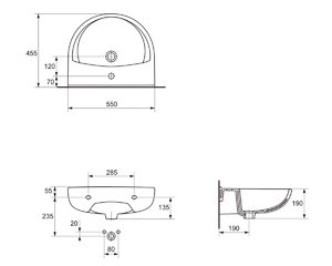 Umyvadlo Cersanit President 55, s otvorem, s přepadem, bílá, K08-007