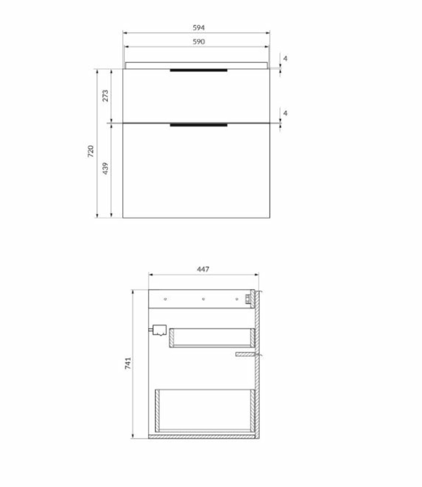 Tato skříňka pod umyvadlo z dřevotřísky má dvě prostorné zásuvky se systémem měkkého zavírání. Pohodlné rukojeti jsou k dispozici v černé nebo matně stříbrné barvě (prodávají se samostatně). Pro dekorativní účely jsou k dispozici volitelné nábytkové nohy ve stejných barvách.
