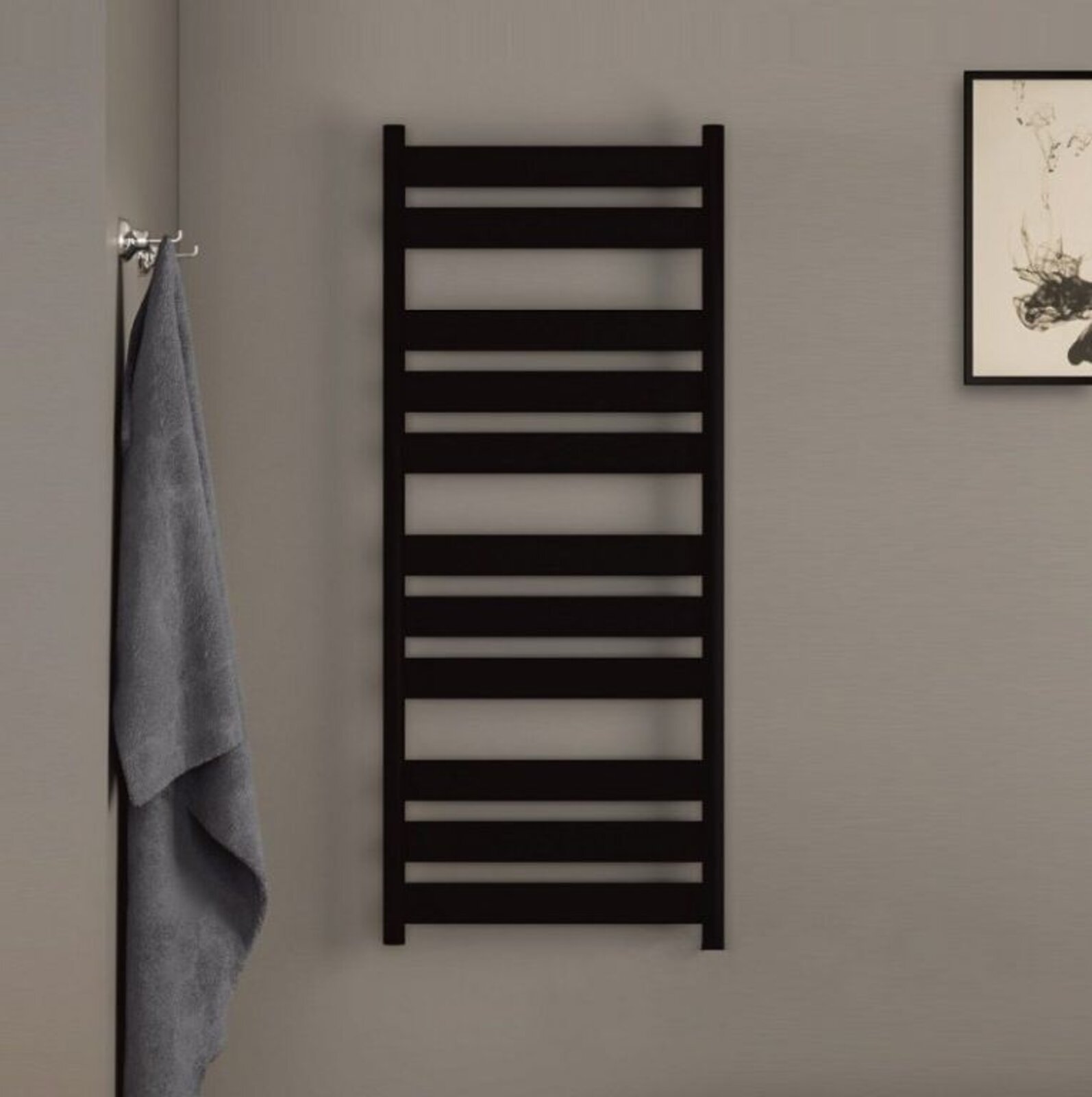 Vysoká elegance a jasné linie. Díky plochému designu vodorovných trubek přináší radiátor Zehnder Zeta do koupelny moderní vzhled a funkčnost. Velkorysý prostor mezi sadou vodorovných trubek a jejich větší vzdálenost od zdi pro snadné zavěšení a rychlejší sušení ručníků.