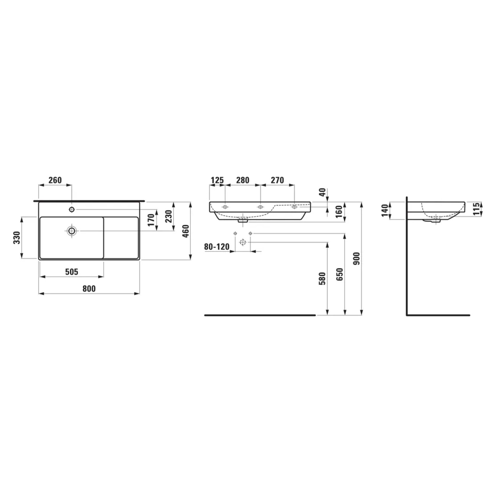 Umyvadlo Laufen Ardo 80 závěsné, levé, bílá, H817AR60001041