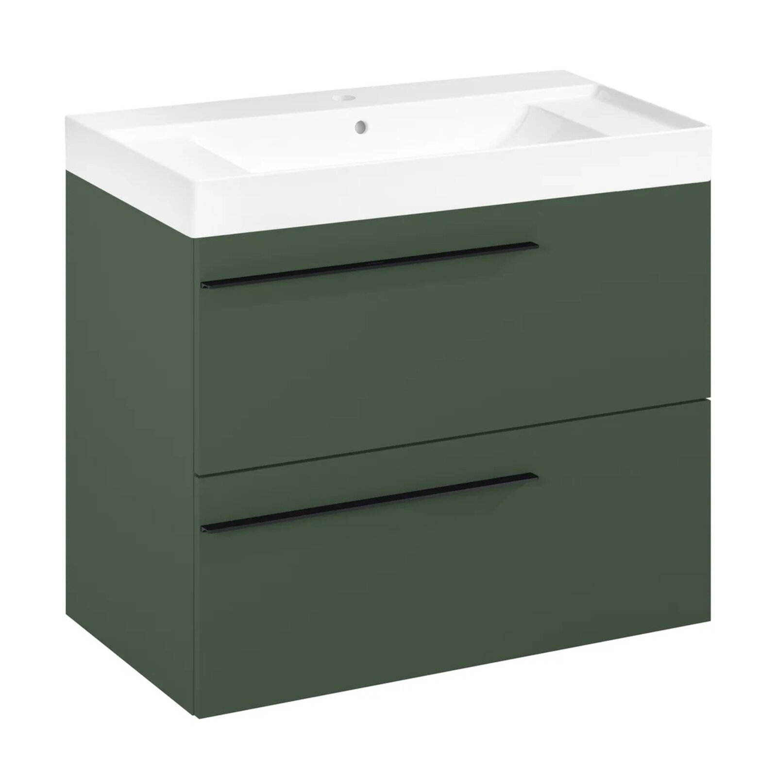 Nábytkový set Laufen Ardo 80, skříňka 80 pod umyvadlo lesní zelená mat, umyvadlo Ardo 80 nábytkové bílé, madlo černá mat
